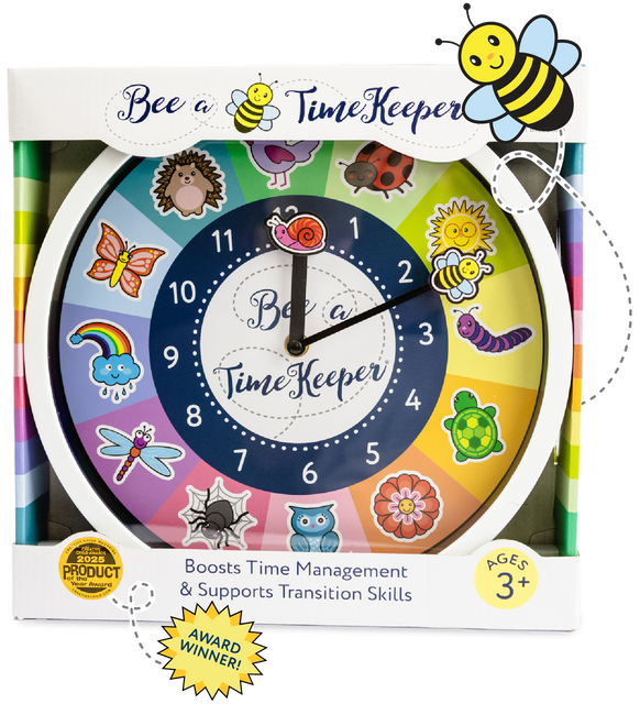 The Bee A Time Keeper® clock helps make abstract time visible and concrete for children ages 3–8. Designed to support routine building, smoother transitions, and emerging time awareness, it plays a role in building confidence during everyday routines.